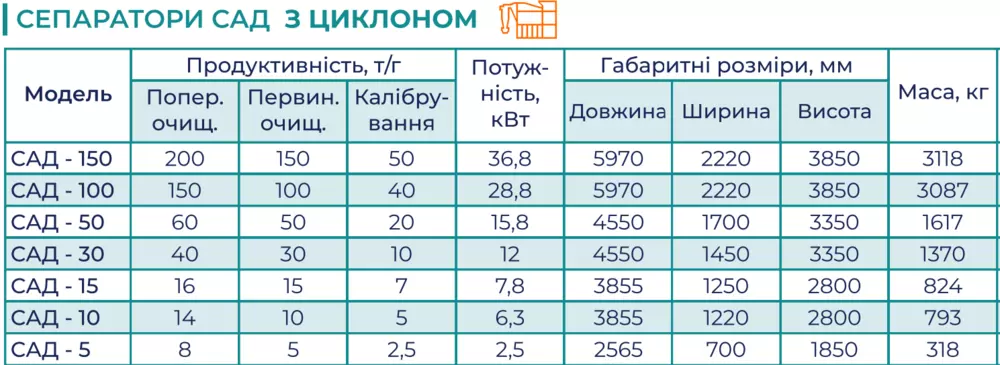 Особливості сепаратора САД-150 з циклоном